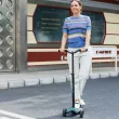Szeroka kierownica w kształcie litery T, inspirowana motocyklami typu chopper, zapewnia maksymalną kontrolę i komfort. Duże przednie koła (120 mm) o szerszym rozstawie zapewniają wysoką stabilność i amortyzację na nierównościach.