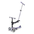 Wybierając lekką hulajnogę Mini Micro Deluxe Rock & Go LED, wybierasz wyjątkową hulajnogę 6 w 1, która może również się bujać. Ta inteligentna i wszechstronna hulajnoga z łatwością przekształca się zaledwie dwoma kliknięciami – z bezpiecznej hulajnogi bujanej (z rączką lub bez) w jeździk lub trójkołowiec.