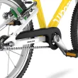 Korby rowerowe zaprojektowane specjalnie do proporcji ciała dziecka. Wielkość zębatek została dobrana tak aby zapewnić optymalny zakres przełożeń. Osłona łańcucha chroni dziecko nie tylko przed zabrudzeniem, ale też przed zranieniem.